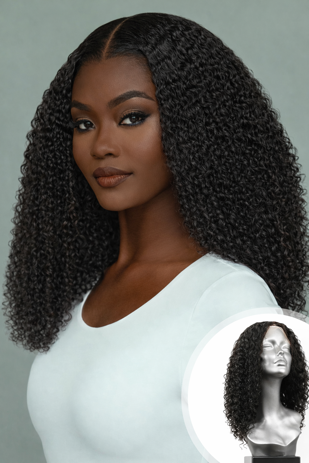 Ce mannequin porte une Perruque Blow-Out Closure d’Othentique. Sa texture crépue lisse offre du volume et un fini mat, parfait pour un brushing naturel ou un lissage brésilien. 100% Indian raw hair. Collection KinkyCurlyYaki.