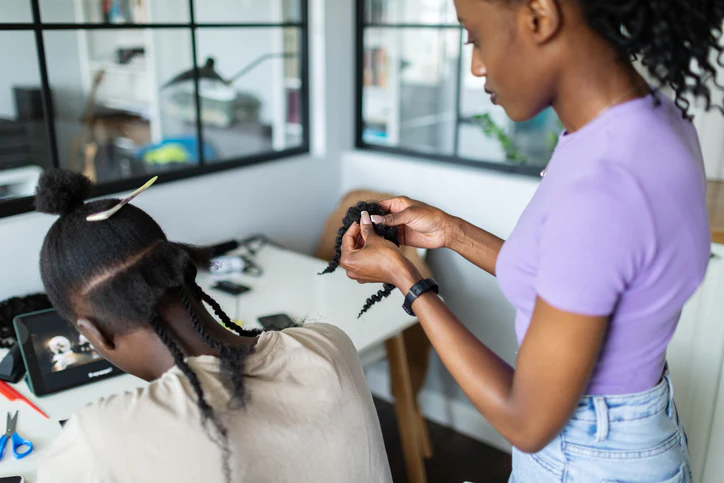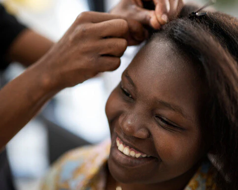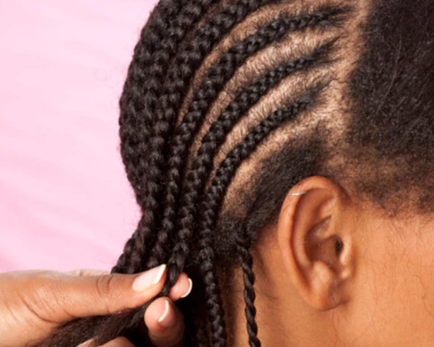 2. Pose de la lace closure : Les closures en dentelle Othentique sont généralement posées par couture. Après avoir positionné la closure sur le haut de la tête, elle est cousue aux tresses. La dentelle est ensuite coupée pour un ajustement parfait, et les bords peuvent être plaqués avec du gel ou de la mousse coiffante pour un effet naturel.